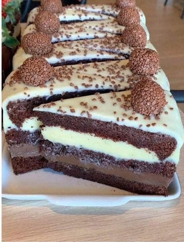 Ein himmlischer Genuss für alle, die Schokolade und Vanille lieben! Diese elegante Torte kombiniert saftigen Schokoladenkuchen, cremige Vanille- und Schokoladenschichten und eine glänzende weiße Schokoladenglasur. Perfekt für besondere Anlässe oder einfach, um sich selbst zu verwöhnen. Zutaten Für den Schokoladenkuchen: 200 g Mehl 200 g Zucker 75 g Kakaopulver 1 TL Backpulver 1 TL Natron … Lire plus
