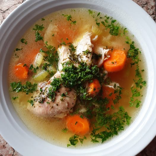 1 Suppenhuhn (ca. 1,5 kg) oder Hähnchenteile (Flügel, Keulen, Rumpf)
