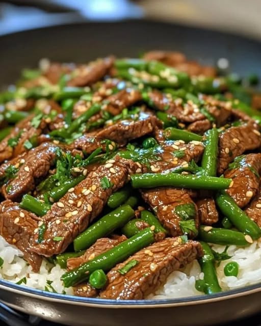 Wenn es schnell gehen soll, aber trotzdem richtig lecker sein darf, ist diese Knoblauch-Rindfleisch-Pfanne mit grünen Bohnen und duftendem Reis genau das Richtige. Zarte Rindfleischstreifen treffen auf knackige Bohnen, aromatischen Knoblauch und Ingwer – verfeinert mit Sojasauce und Sesamöl. Ein perfektes Gericht für alle, die es deftig und frisch zugleich mögen.