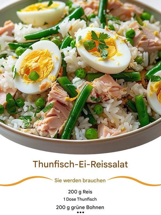Dieser Reissalat mit Thunfisch, grünen Bohnen und Ei ist das perfekte Rezept für ein leichtes Mittagessen oder ein spontanes Sommeressen. Seine Frische und Ausgewogenheit machen ihn zu einem festen Bestandteil meines Kochbuchs, wenn es warm wird und ich Lust auf etwas Einfaches und Leckeres habe.
